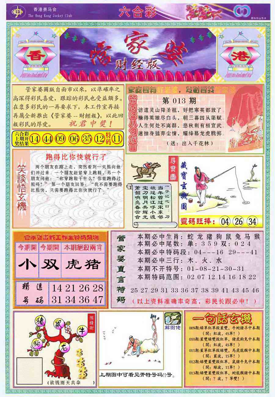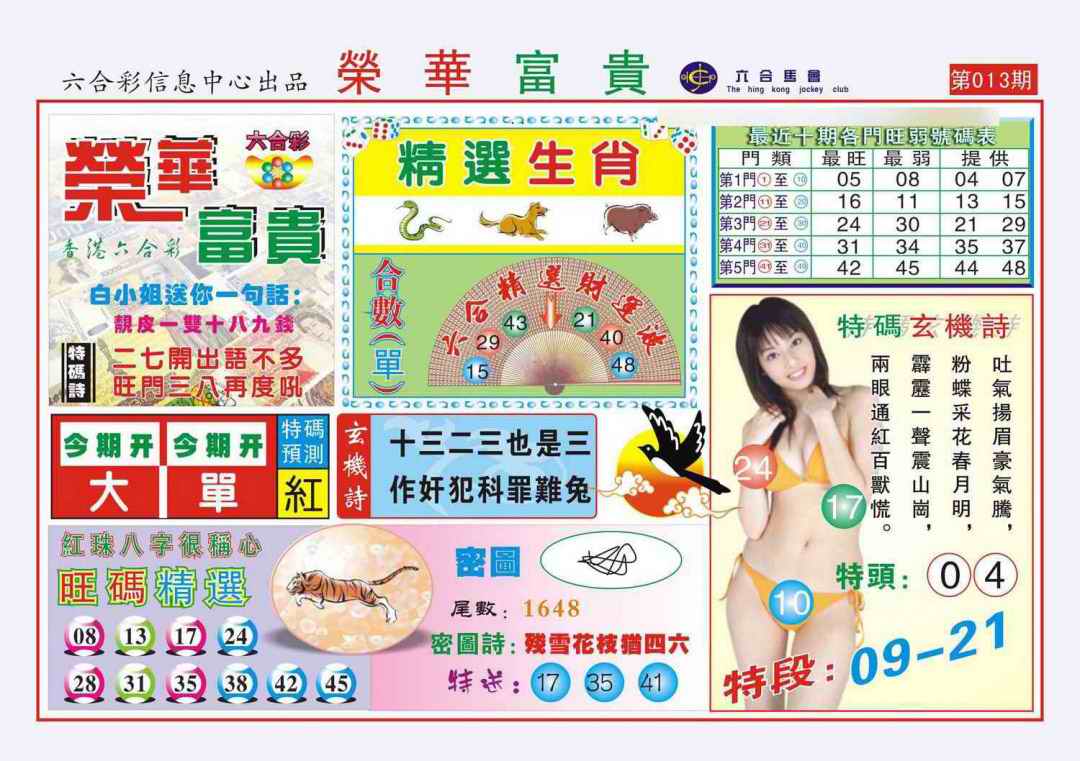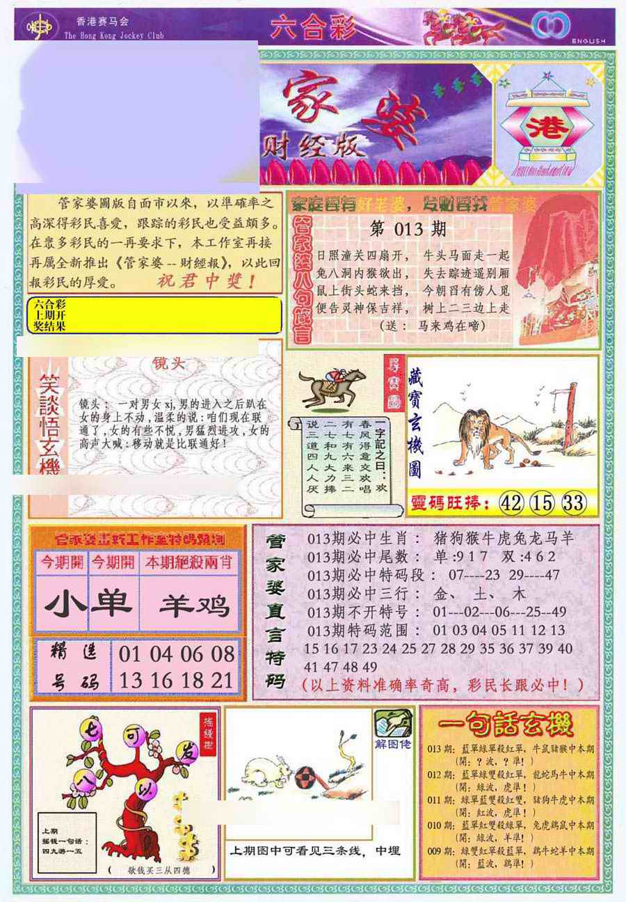 1760 大富翁 1761 侨乡狂扫黑庄 1765 马经王牌料 1766 香港马会专刊A