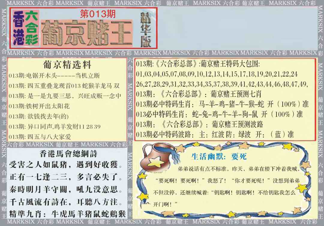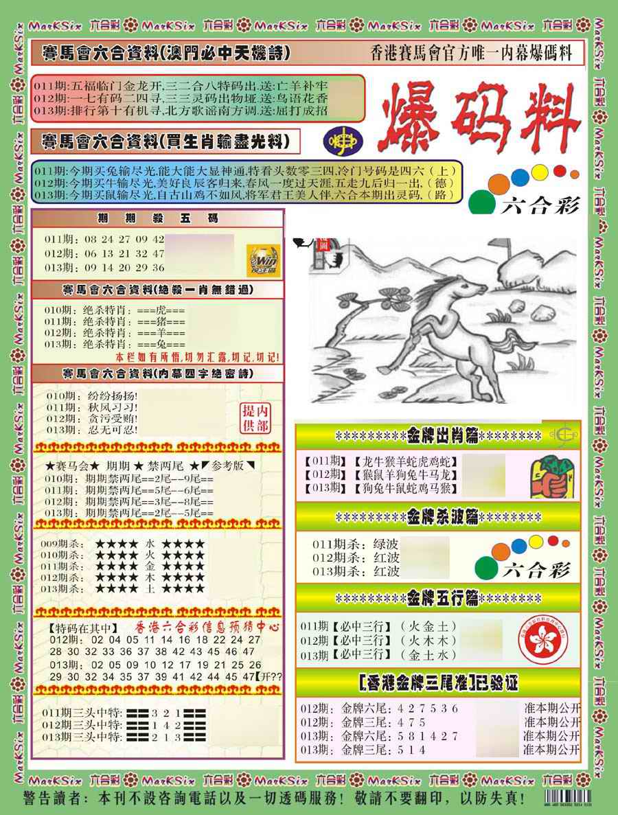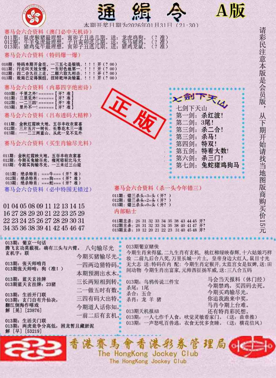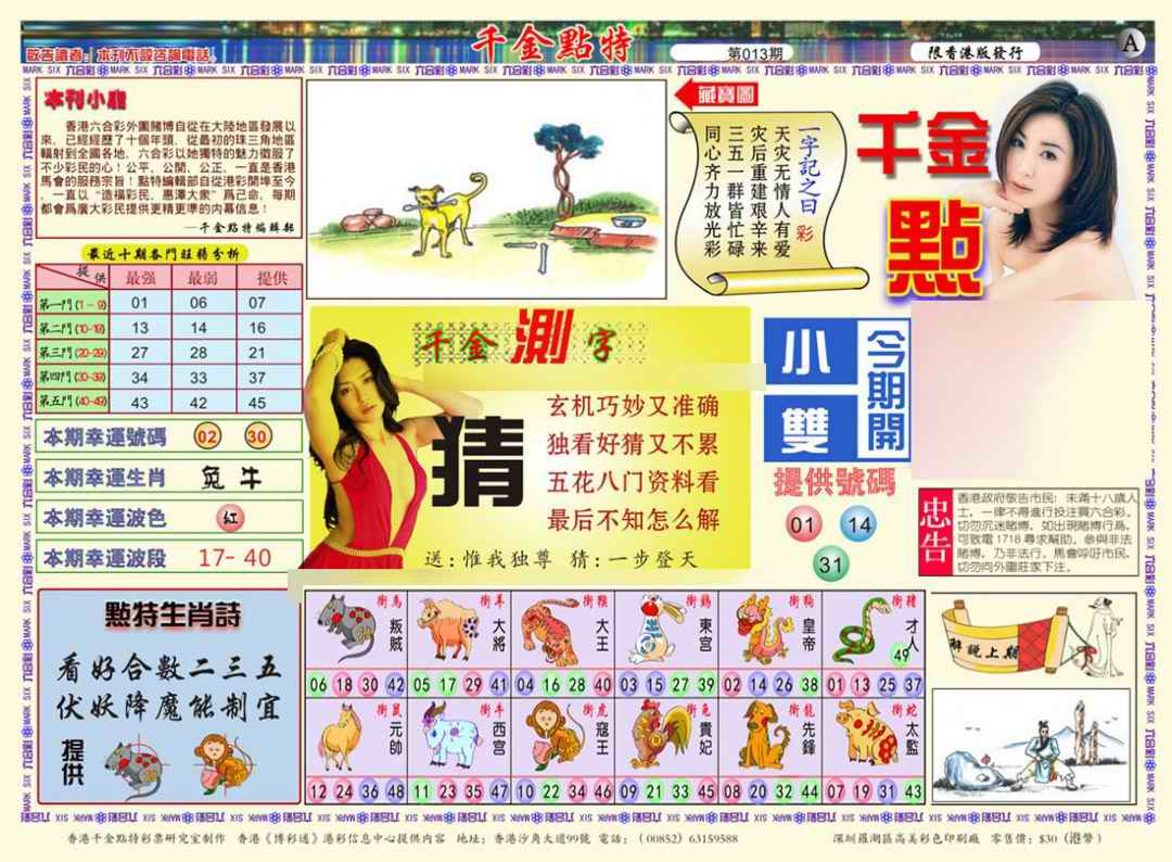 1760 大富翁 1761 侨乡狂扫黑庄 1765 马经王牌料 1766 香港马会专刊A