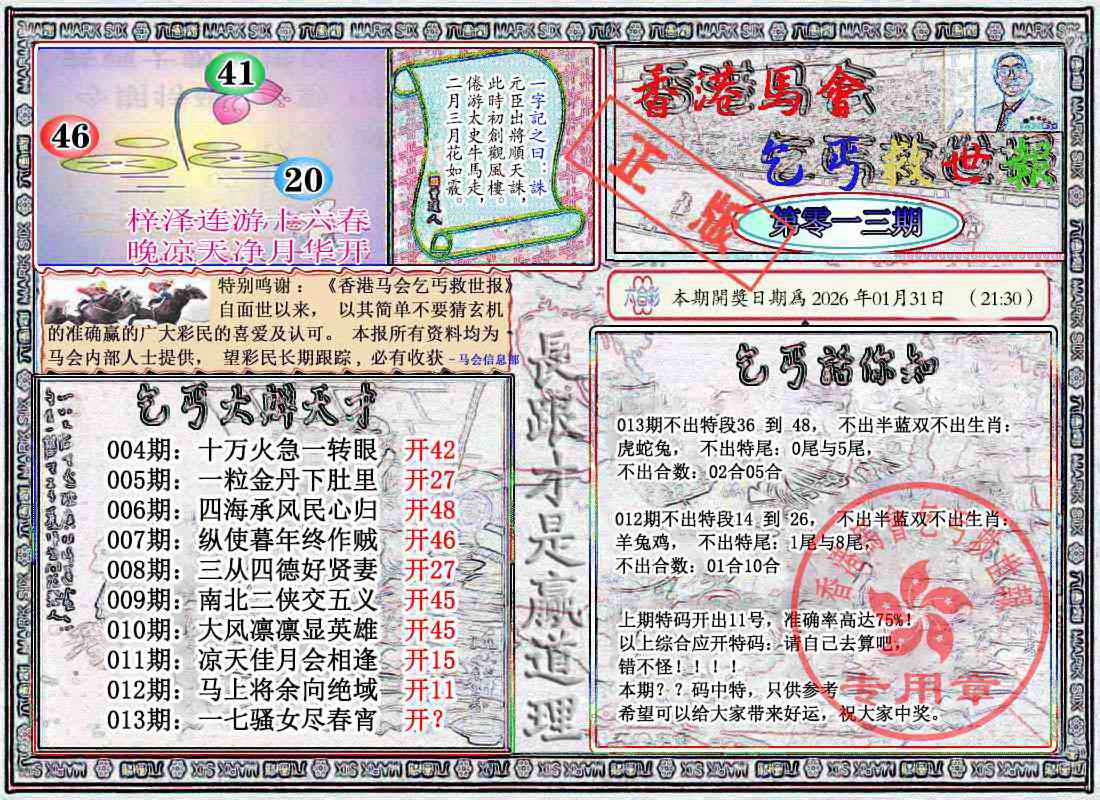 1767 香港马会专刊B 1768 赌王心经 1769 莲花报 1769 莲花报