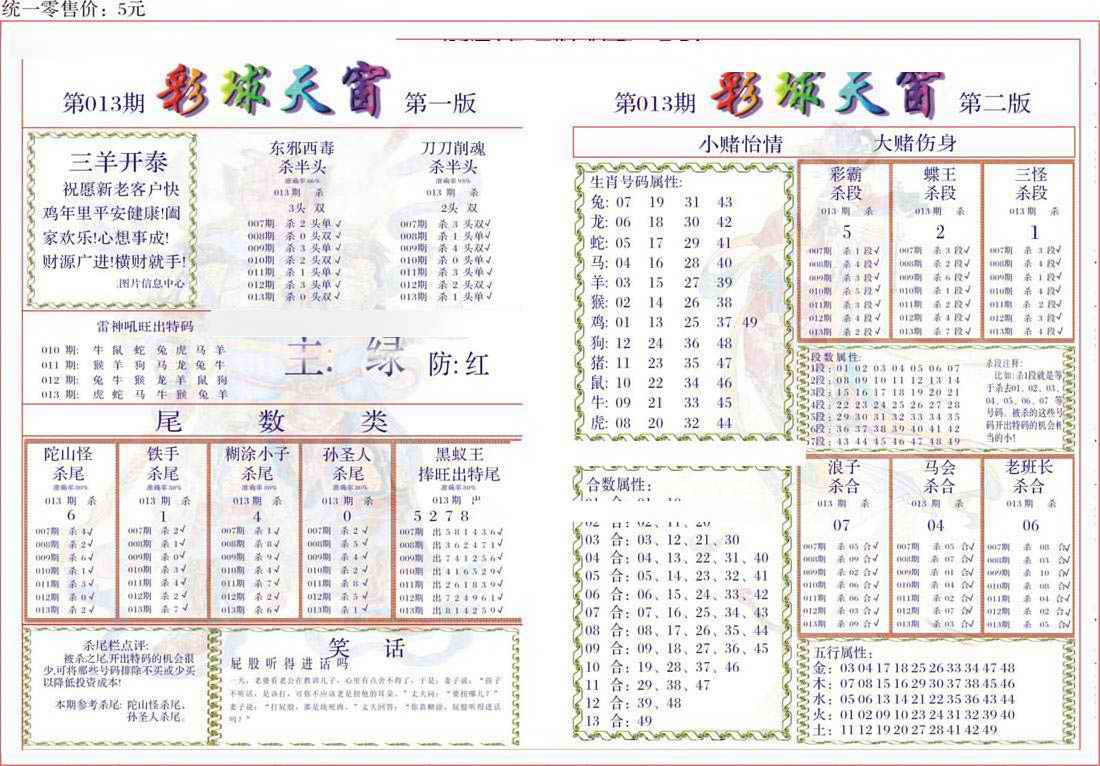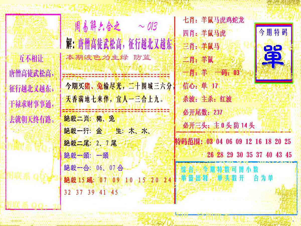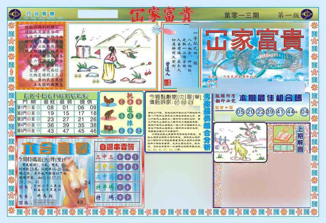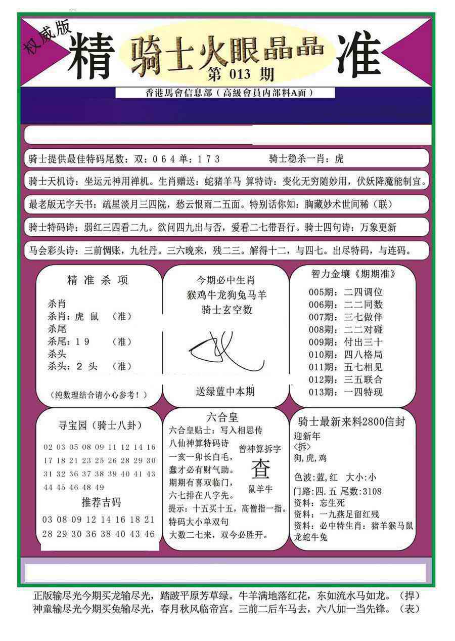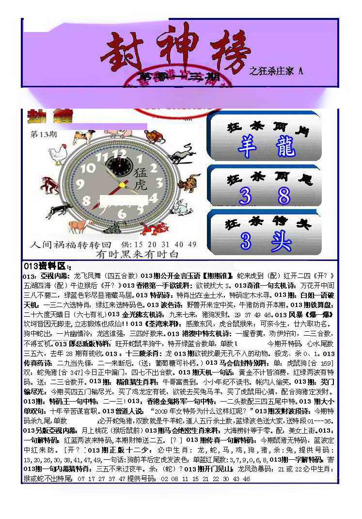 063 六合禅机A 064 六合禅机B 069 特 新 报A 070 特 新 报B