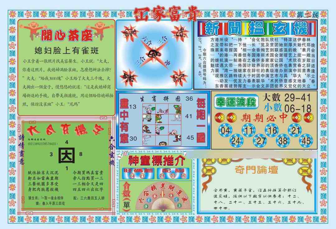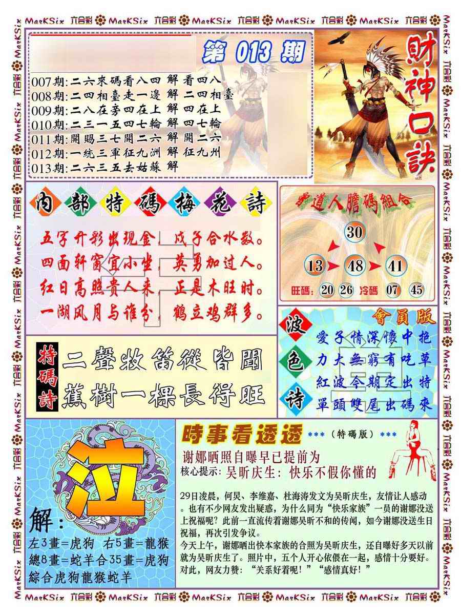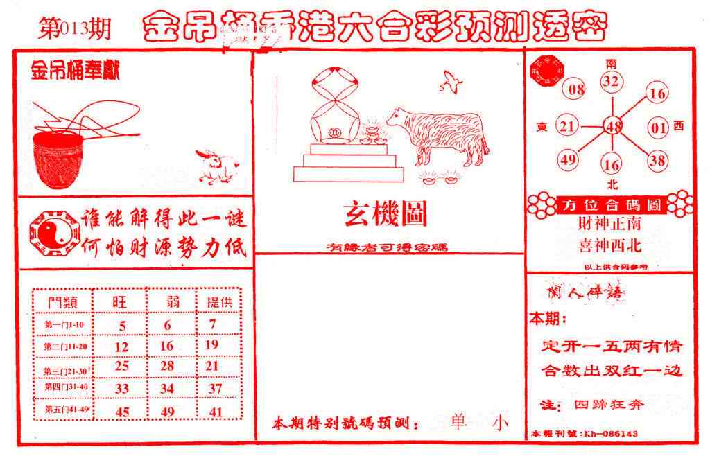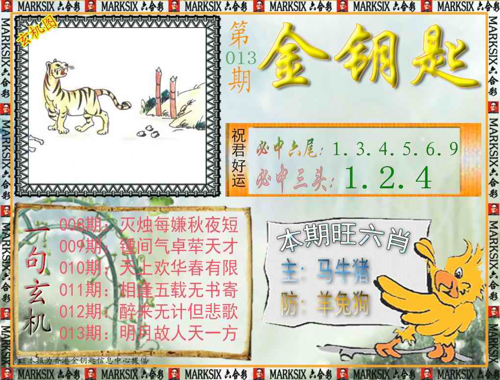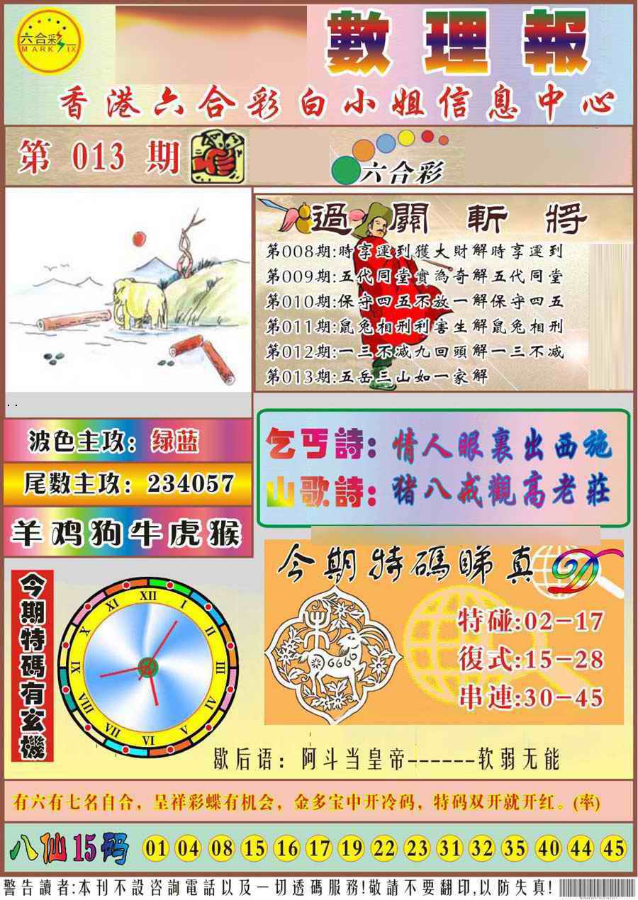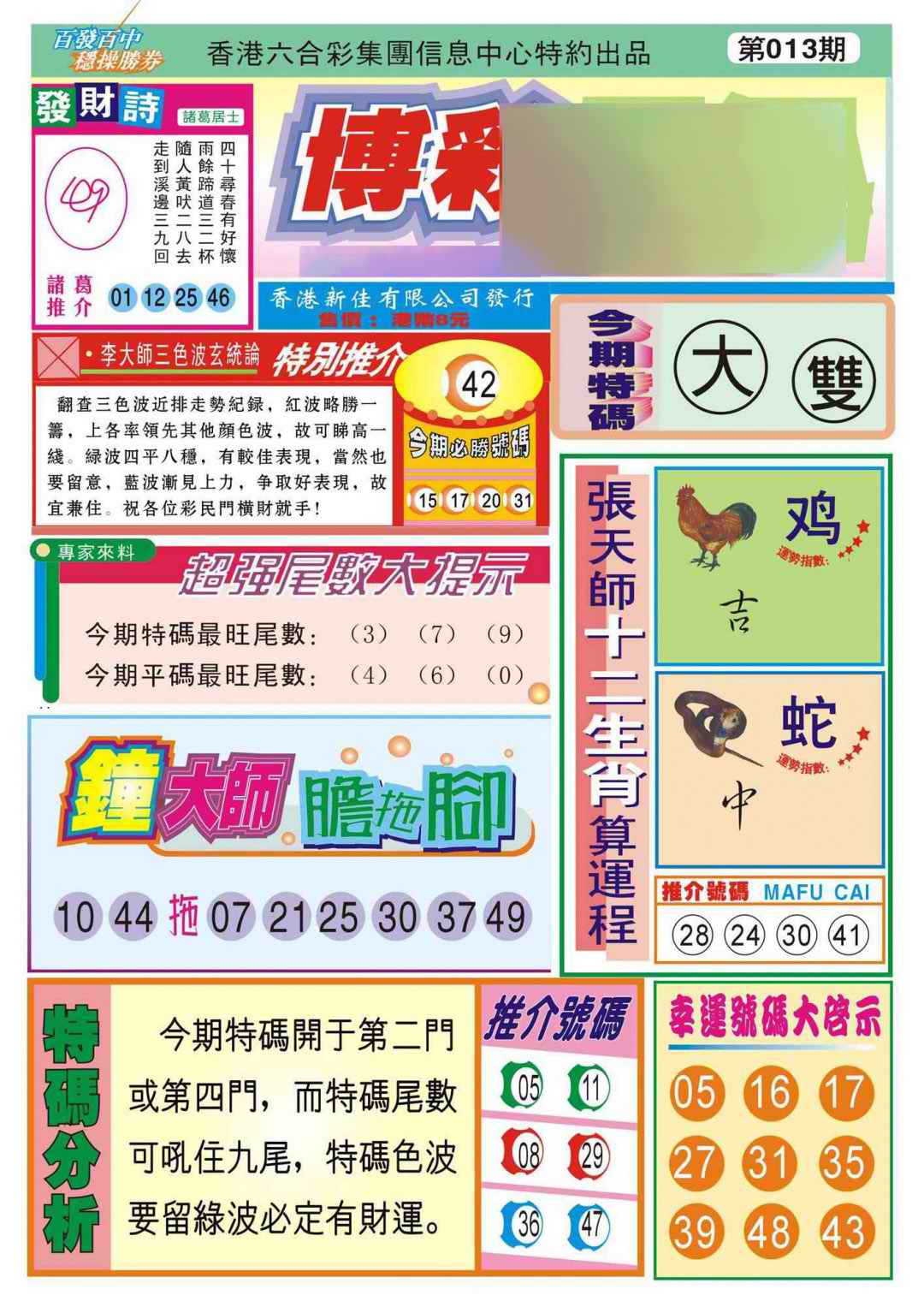 063 六合禅机A 064 六合禅机B 069 特 新 报A 070 特 新 报B