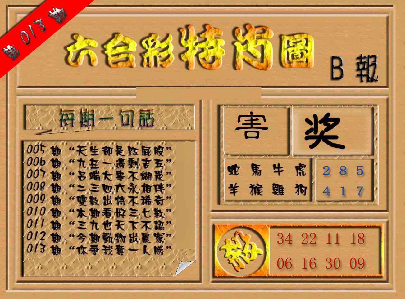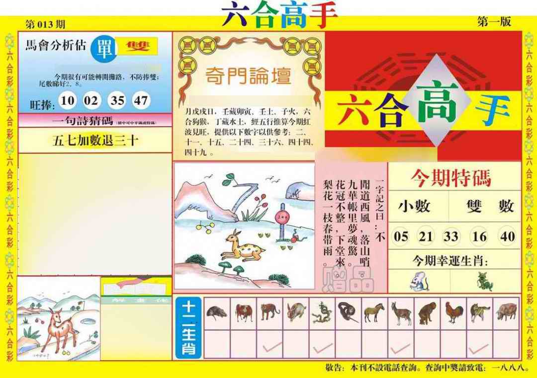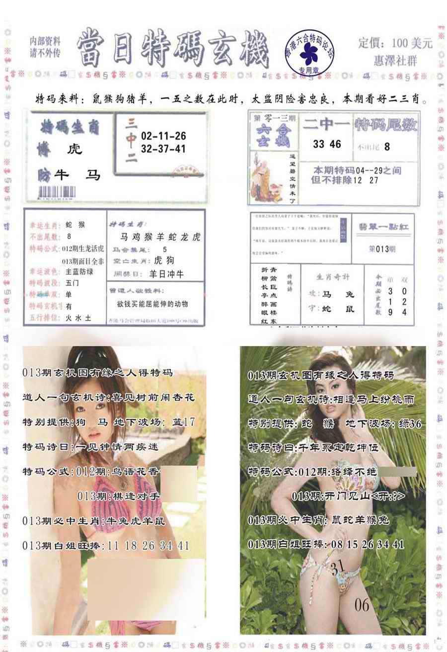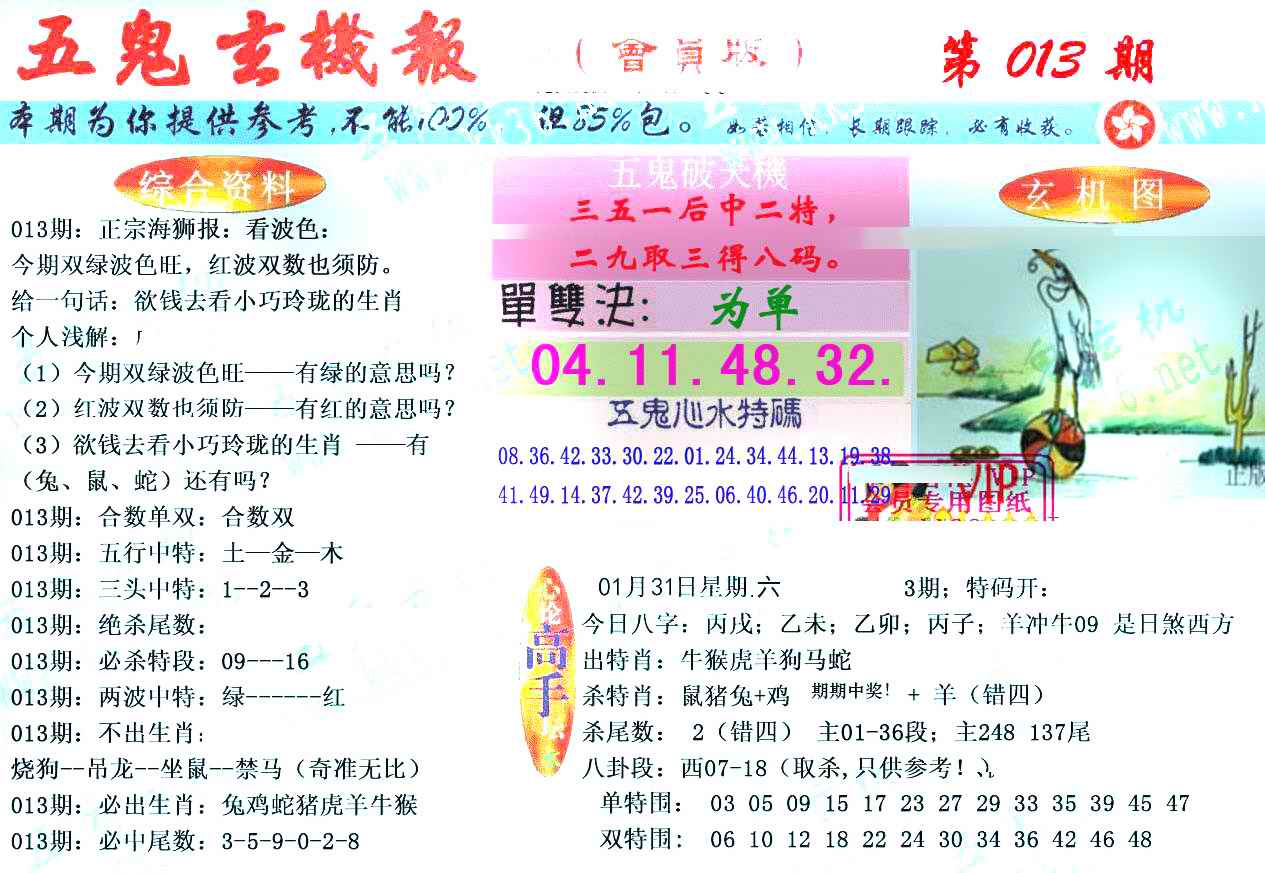 063 六合禅机A 064 六合禅机B 069 特 新 报A 070 特 新 报B
