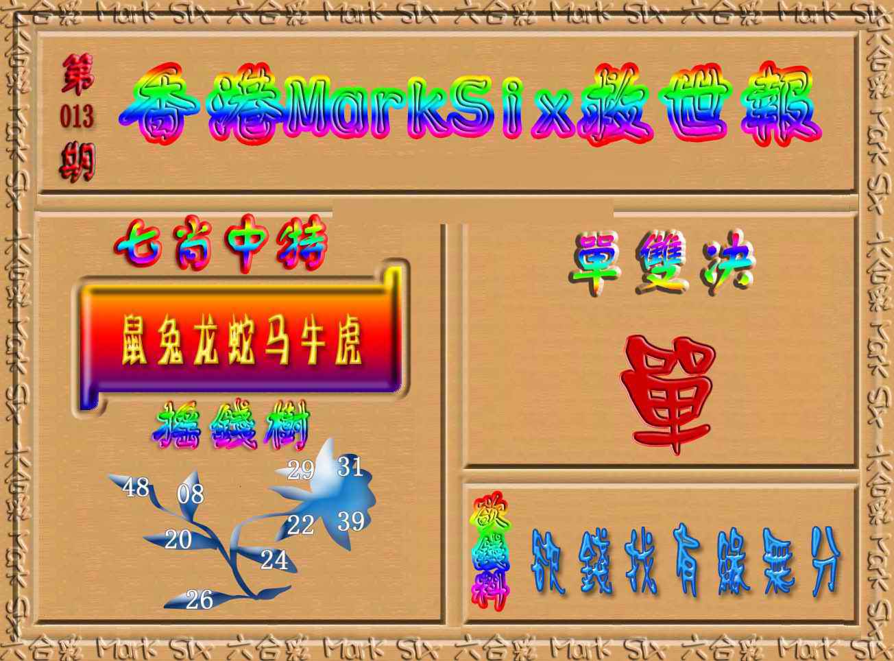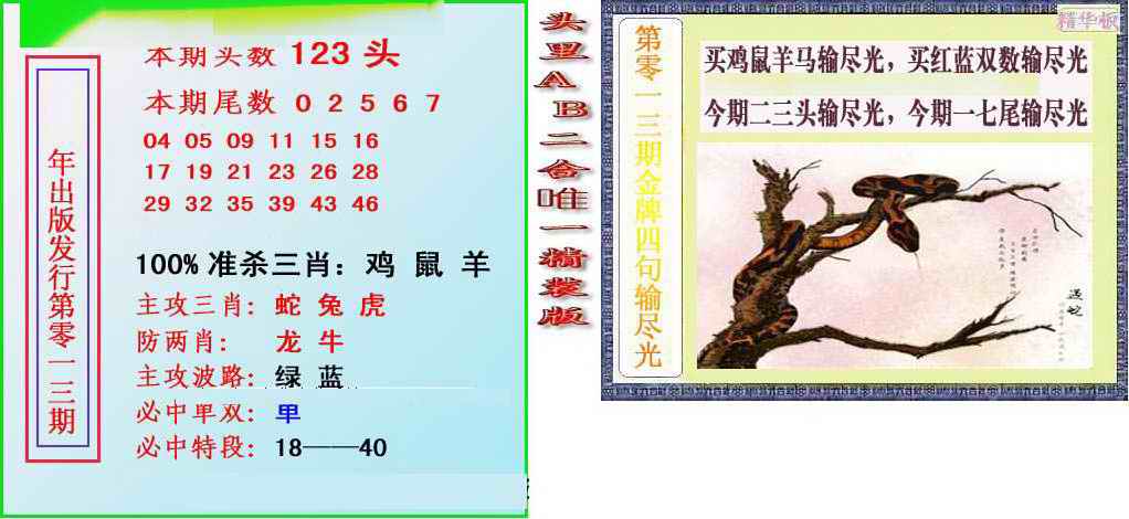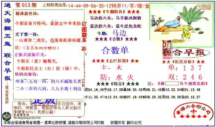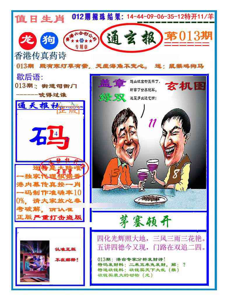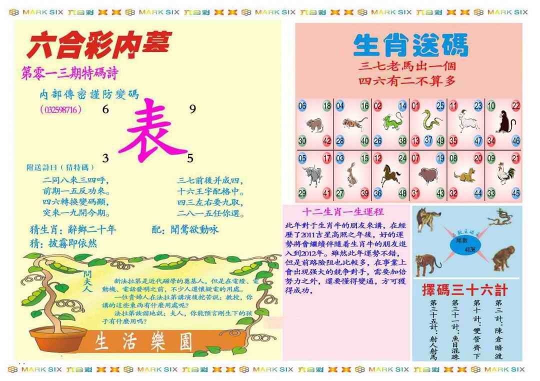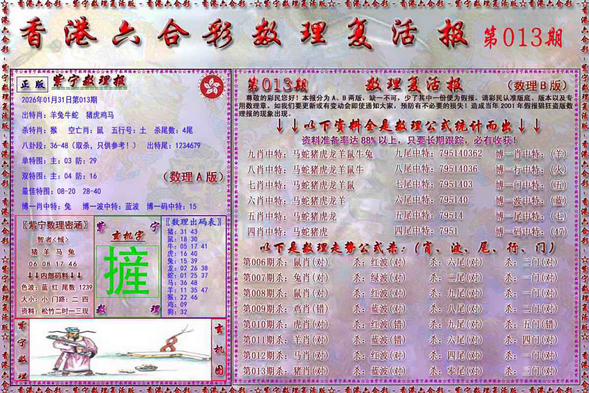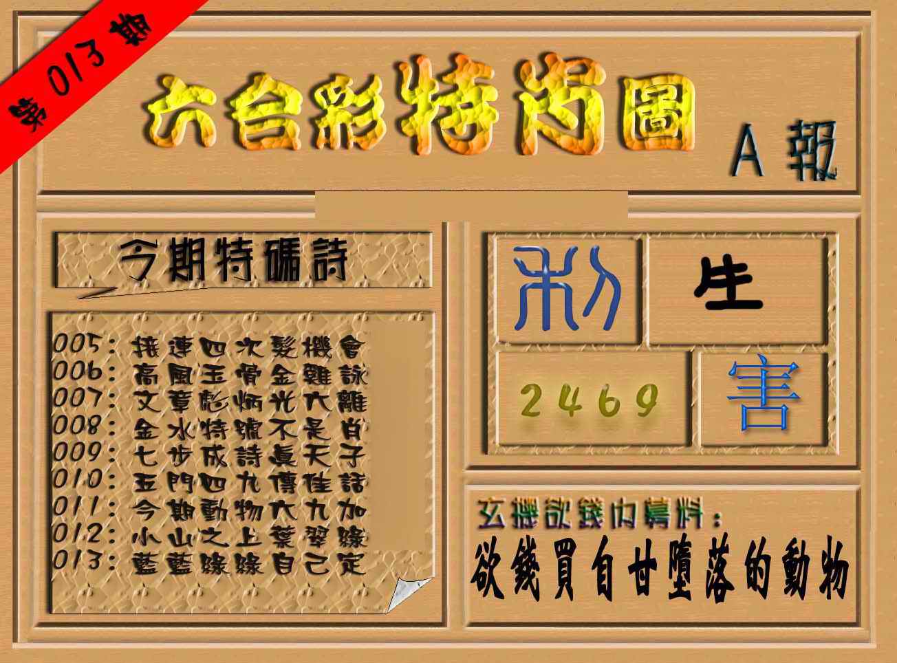063 六合禅机A 064 六合禅机B 069 特 新 报A 070 特 新 报B