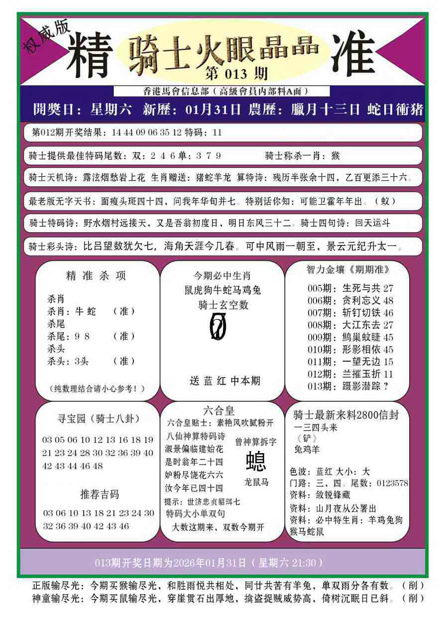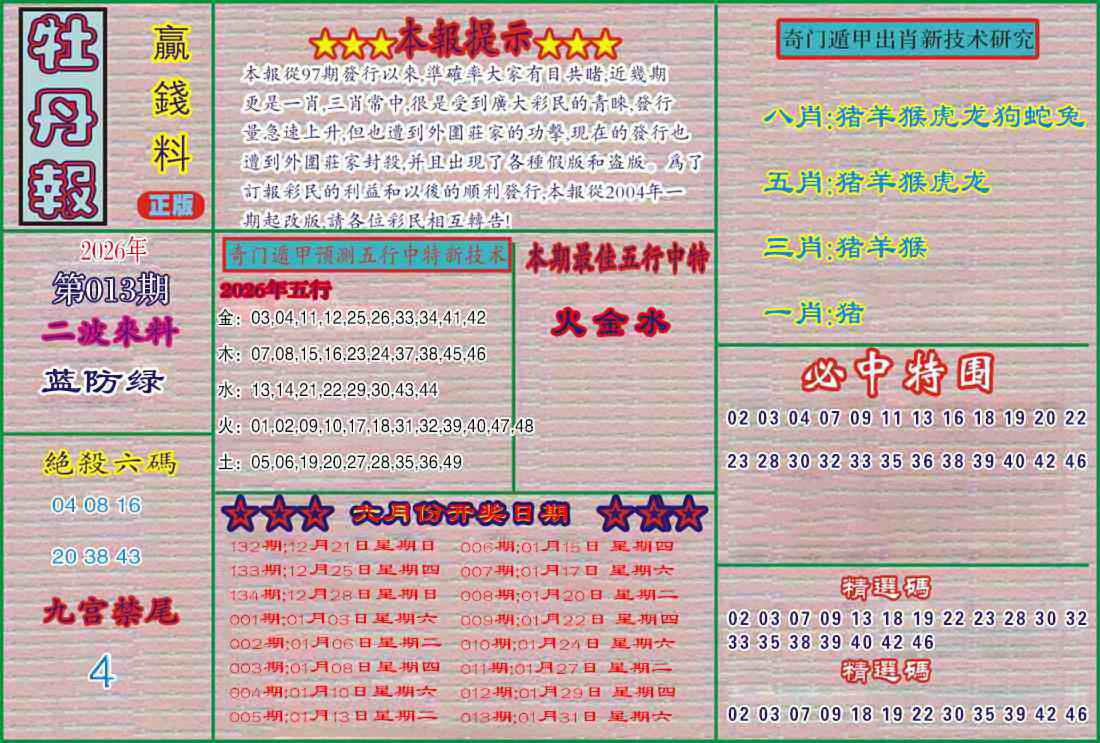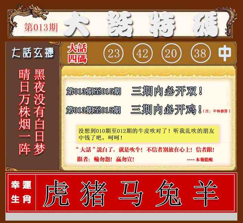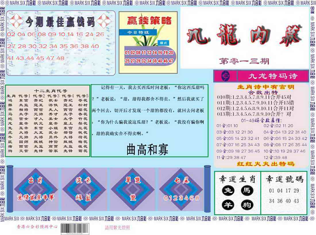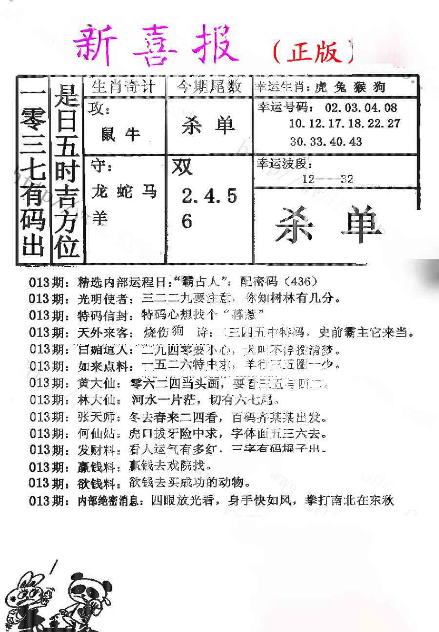 063 六合禅机A 064 六合禅机B 069 特 新 报A 070 特 新 报B