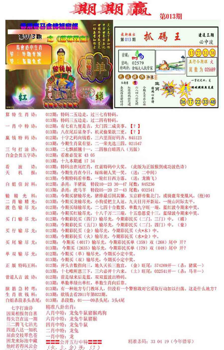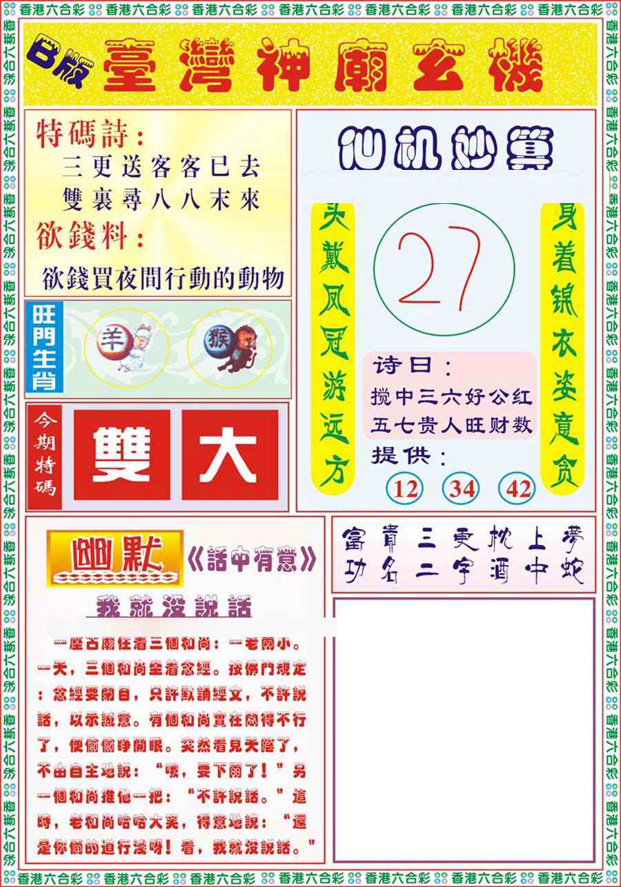 1672 六合黑庄 1673 马经霸王 1674 佛祖救世报 1675 关公砍杀