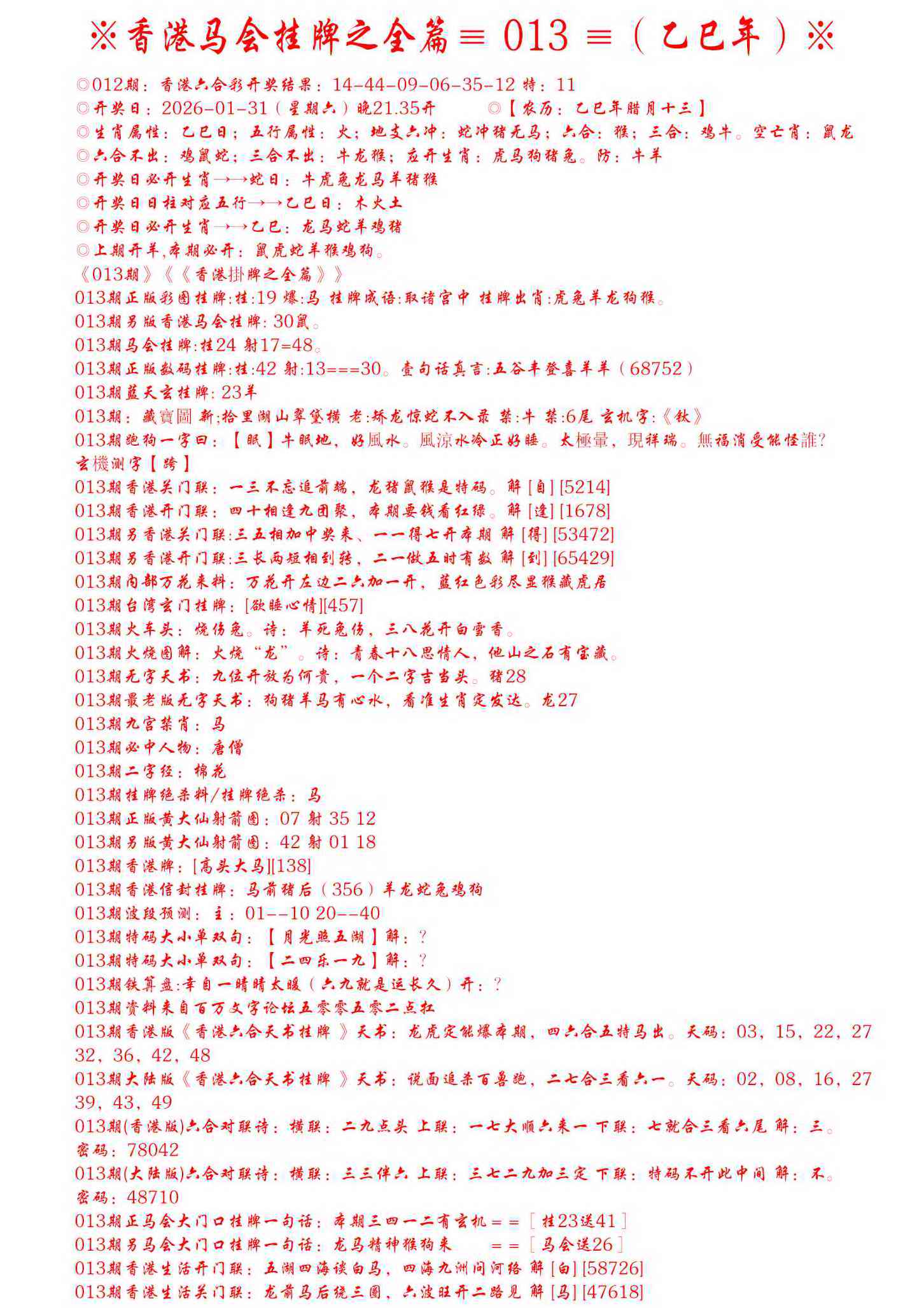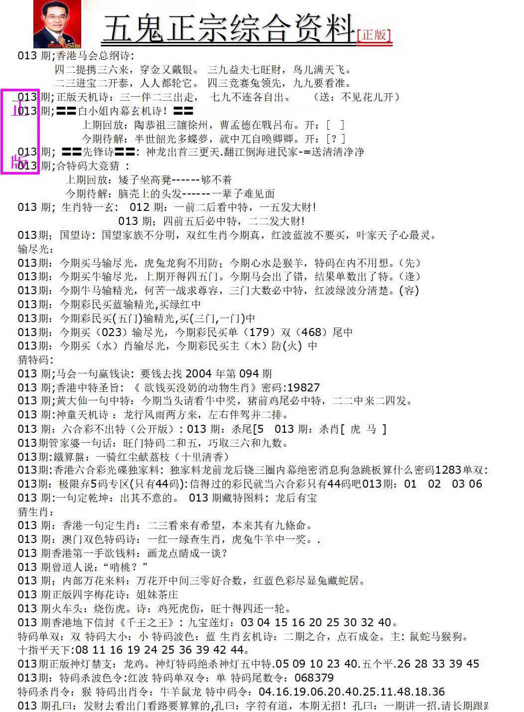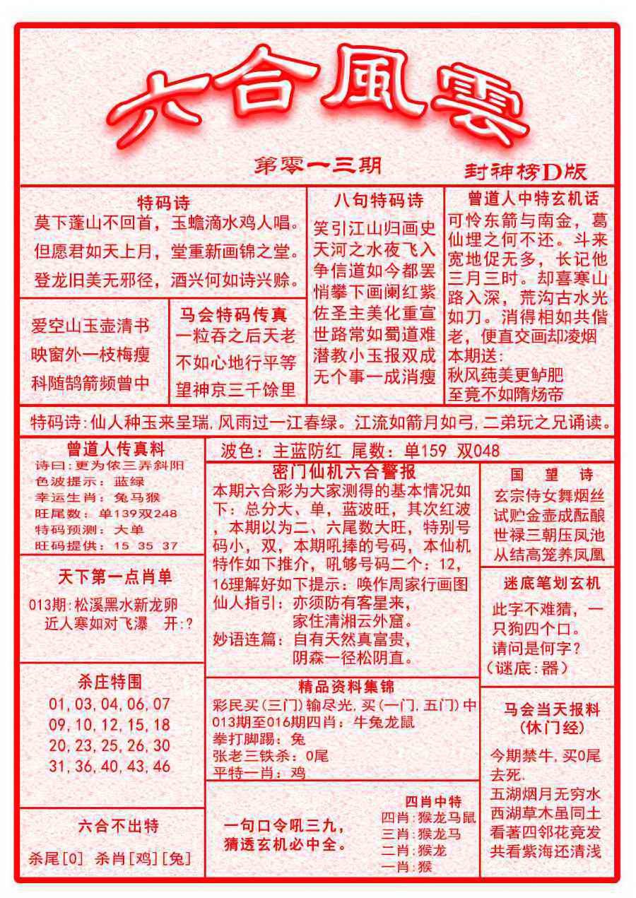 055 玄机新刊A 056 玄机新刊B 057 曾道人玄机A 058 曾道人玄机B