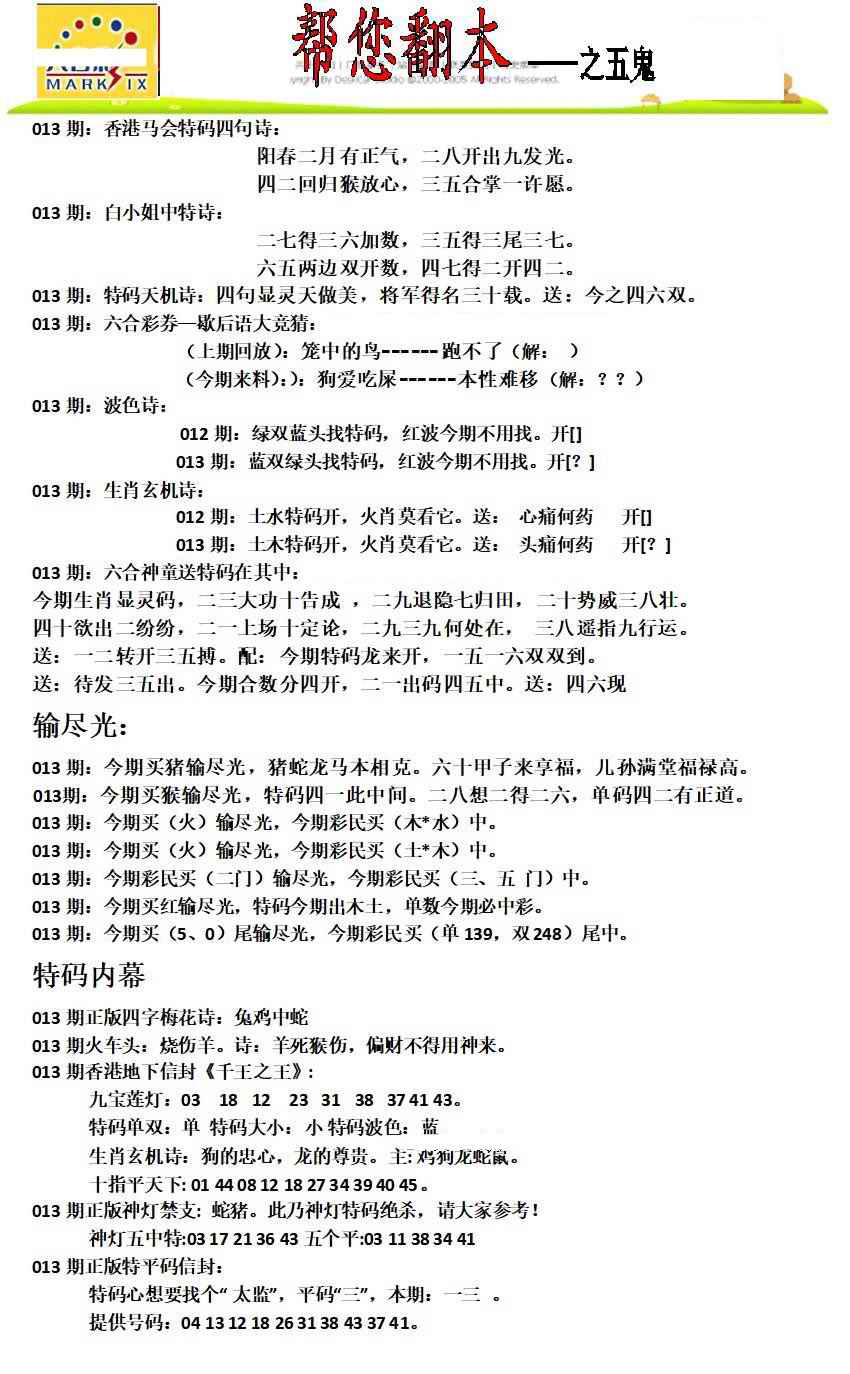 361 大财经发财图 577 金旺旺信箱 553 九方大师 156 内部透码(信封)