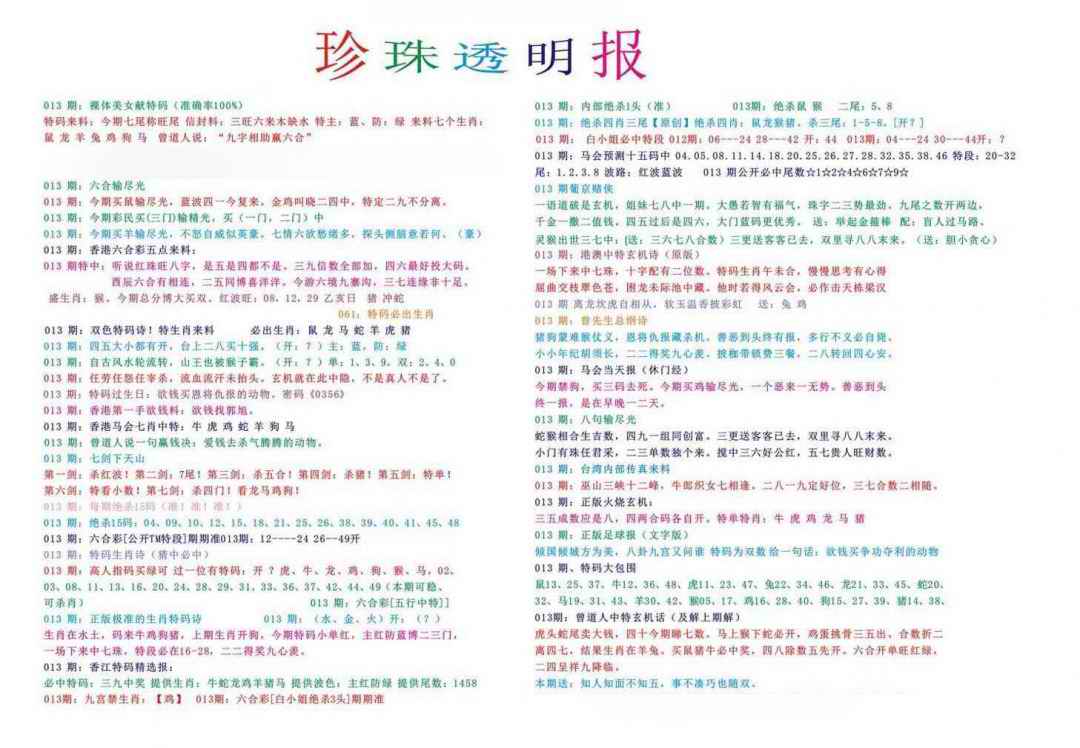 1581 精准传真报 1582 新天线宝宝内幕报 1583 当期狗仔版 1585 白姐泄密